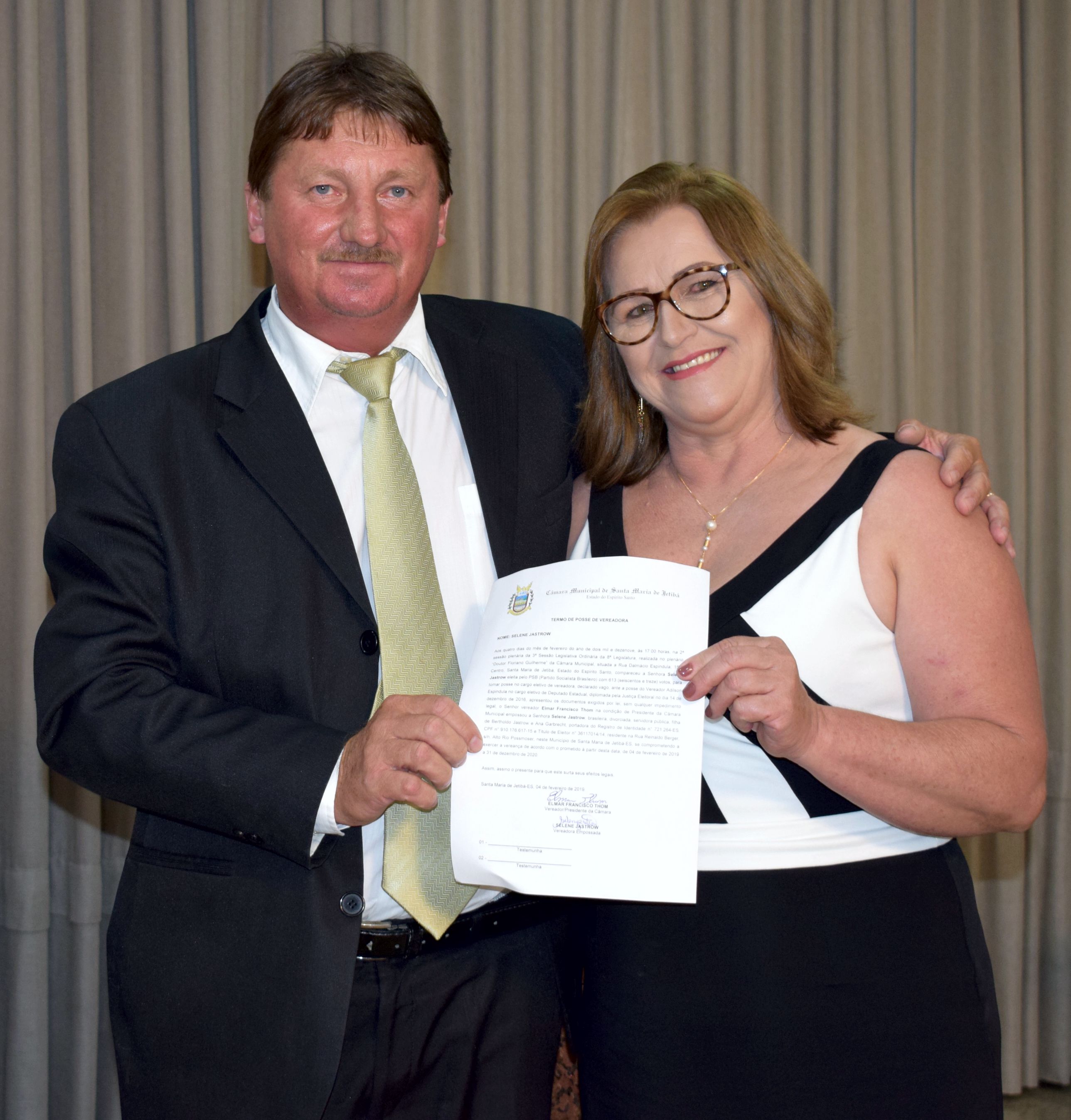 Presidente Elmar Francisco Thom e a Vereadora empossada Selene Jastrow